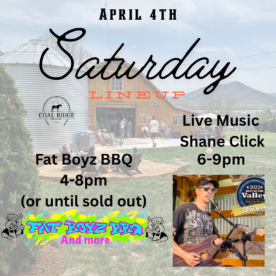 04apr4:00 pm9:00 pmShane Click and Fat Boyz BBQ at Coal Ridge Brewery